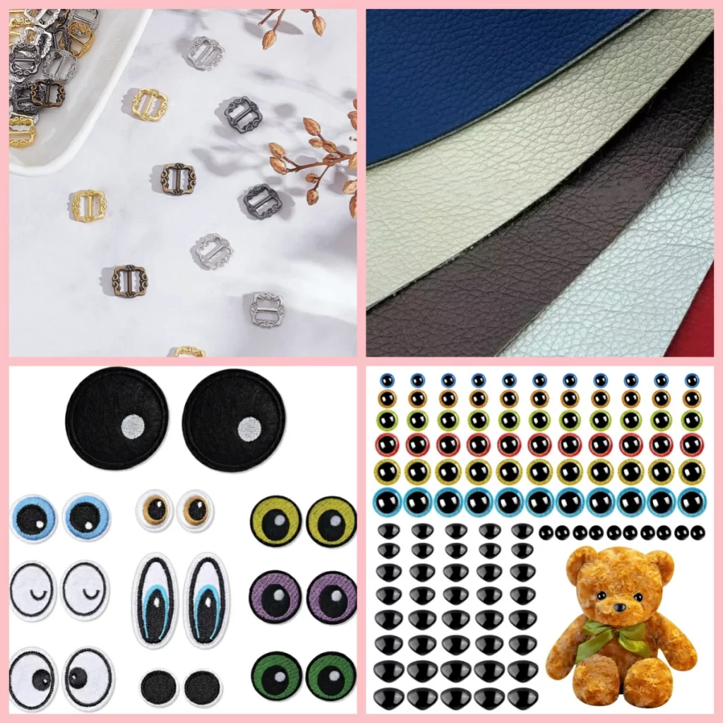 - Metal elements used for chains, buckles, or decorative parts
