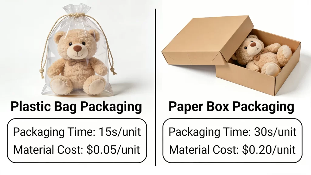 Packaging structure can influence the overall cost of a plush toy project.
